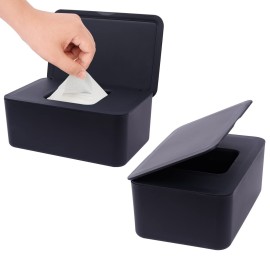 Seposeve 2 Pack Wipes Dispenser, Wipe Holder for Baby & Adult, Refillable Wipe Container, Keeps Wipes Fresh, Far from Dirty Wipes, Easy to Open/Close Wipes Pouch Case. (2 Black)