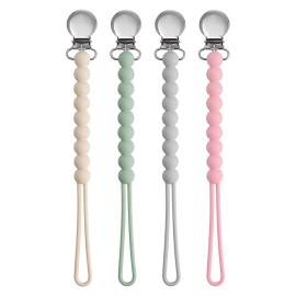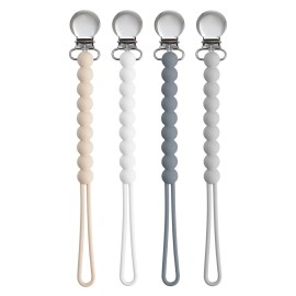 Pacifier Clip for Boys Girls - MORIBOX 4 Pack Paci Clip Soothie Baby Binky Holder for Shower Gift Birthday (Beige+White+Dgrey+Lgrey)