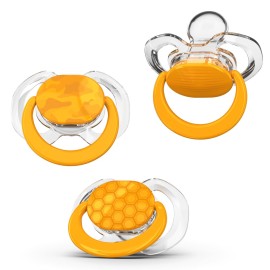 Smilo Baby Pacifier with Orthodontic Design for Healthy Dental Development - Stage 3 for Babies 9+ Months - Pack of 3X 100% Silicone Pacifiers BPA Free - Orange