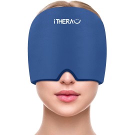 iTHERAU Migraine Relief Cap, Soothing Headache Hat, Gel Ice Pack Head Wrap with Hot and Cold Therapy, Headache Relief Cap for Sinus, Puffy Eyes, Tension and Stress Relief Blue