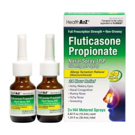 HealthA2Z Fluticasone Propionate Nasal Spray provides powerful, 24-hour allergy relief in an easy-to-use spray format. Each metered spray delivers 50 mcg of Fluticasone Propionate, a corticosteroid that works to reduce inflammation in the nasal passages and relieve congestion, sneezing, and runny nose. Formulated for both indoor and outdoor allergy..