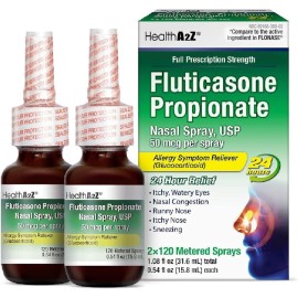 HealthA2Z Fluticasone Propionate Nasal Spray helps relieve a broad range of uncomfortable symptoms like congestion and itchy, watery eyes. These symptoms can be triggered by outdoor, indoor or animal allergens like pollen, mold, dust or pet dander. It can be used daily or limited to use just on the days when symptoms occur...