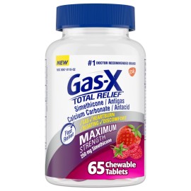 Gas-X Total Relief Chewable Tablets with Maximum Strength Gas Relief Simethicone 250 mg and Heartburn Relief Calcium Carbonate 750 mg, Bloating Relief, Mixed Berries - 65 Count
