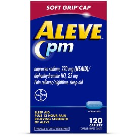Aleve PM Sleep Aid Plus Pain Reliever Caplets, Naproxen Sodium & Diphenhydramine HCl, Nighttime, 120 Count