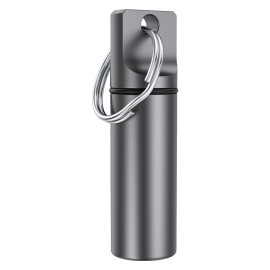 Small Pocket Pill Box Keychain, Aluminium Alloy Portable Mini Pill Organizer Case Container for Purse, Waterproof Metal Pill Holder Medicine Bottle for Outdoor Camping Travel (Grey)