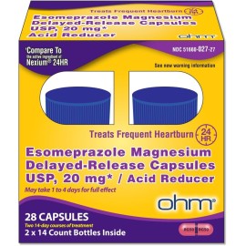 Ohm Esomeprazole Magnesium Delayed Release Capsules 20mg - Frequent Heartburn & Acid Reflux Relief, 24 Hour Chest & Stomach Acid Reducer (4 Weeks of Supply, 28, Count)
