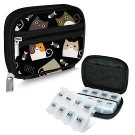 Serfeymi Weekly Travel Pill Organizer Pill Case for Purse with Removable 7 Day Pill Box, Fashionable Travel Medicine Organizer Pill Container for Medicine, Vitamin, Supplement - Black 02 + Pill Box