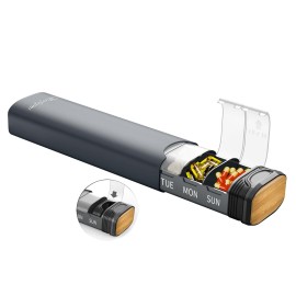 Metal Weekly Pill Organizer, Serfeymi Aluminum Daily Pill Box(Spare Gasket Provided),7 Day Pill Case Travel Medicine Organizer,Pill Containers with Individual Lid for Vitamins,Pills, Supplement-Gray