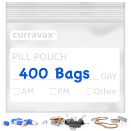 CURRAVAX Pill Pouch Bags for Travel Pack of 400 - BPA Free 3 x 2.75 inch Pill Pouch - Pill Pouches for Medicine with Write on Label -Clear Ziplock Pill Baggies for Travel Medicine Organizer