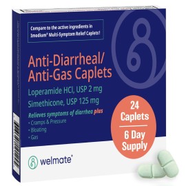 WELMATE - Anti-Diarrheal/Anti-Gas Caplets (24 Count) - Diarrhea, Gas, Bloating, Cramps - Loperamide HCl 2mg & Simethicone 125mg - OTC Medication
