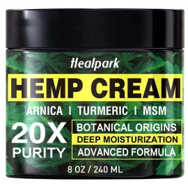 Healpark Hemp Cream 8 fl oz - Arnica,MSM, Turmeric, Emu Oil, Menthol, Aloe