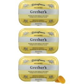 GRETHER\'S Sugarfree ElderFlower Pastilles - Natural Dry Mouth Relief - Soothing Throat & Healthy Voice - Gift for Singers - 2.1 oz. 3-Pack