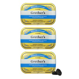GRETHER\'S Original Blackcurrant Pastilles Natural Remedy for Dry Mouth Relief - Soothing Throat & Healthy Voice - Long-Lasting Fruit Flavor, Gift for Singers - Gluten-Free - 3-Pack - 3.7 oz