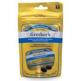 Grether\'s soft pastilles mature for three months to unfold their beneficial effect on throat and voice. Based on the original recipe from 1850, selected, high-quality raw materials such as vegetable glycerine and the red alga agar-agar are carefully handcrafted into the unmistakable pastilles...