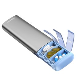 Vaydeer Metal Travel Pill Organizer, 7 Day Weekly Pill Box, Large Capacity Daily Cute Pill Case for Supplements, Pills, Vitamins and Medication (Small,Gray)