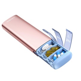 Vaydeer Metal Travel Pill Organizer - Compact Weekly Pill Box for Daily Medication - Portable Small Pill Case for Vitamins, Pills & Supplements (Rose Gold)
