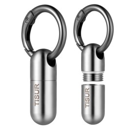 TISUR Micro Keychain Pill Holder, Titanium Pill Case Waterproof Pill Fob for Emergency Aspirin & Nitroglycerin for Travel Purse Pocket
