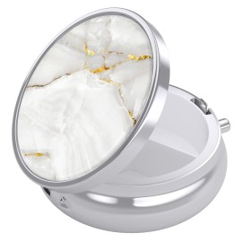 Nipichsha Pill Box, Small Pill Case for Purse & Pocket, Cute Travel Medicine Organizer, Portable Medicine Container Holder to Hold Vitamins, Medication, Fish Oil & Supplement, White Marble