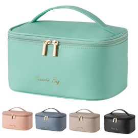 KITENROM Makeup Bag Portable Travel Cosmetic Bag with Brush HolderWaterproof Make Up Bag For Women with Handle Mint Green