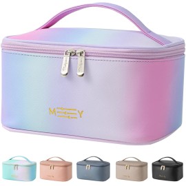 KITENROM Makeup Bag Portable Travel Cosmetic Bag with Brush HolderWaterproof Make Up Bag For Women with Handle Rainbow Gradient Pink
