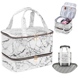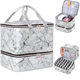 FCQQYWZ Nail Polish Organizer Hold 40+ Bottles & Nail Lamp, Storage Case Double-Layer Bag with Sturdy Handle (WHITE)
