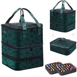FCQQYWZ Large Nail Polish Organizer Case Hold 84+ Bottles Nail Polish & Nail Lamp, 3 Layers Nail Organizers and Storage for Nail Tech with Divider, Travel Carrying Case(Green)