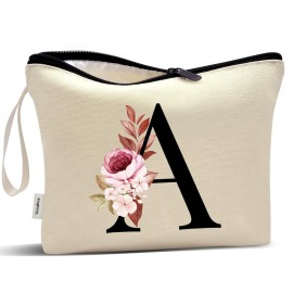 Vavabox A-Z Personalized Makeup Bag, Birthday Gifts for Women Mom, Gifts for Best Friend, Bride Bridesmaid Cosmetic bag (A, Yellow)