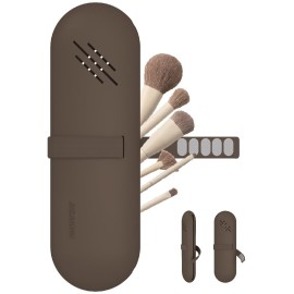 JDZJUCHU Travel Makeup Brush Holder,Make Up Organizer Bag Case,Cosmetic Pouch,Toiletry Organizer,Silicon Small Makeup Brush Purse(Coffee)