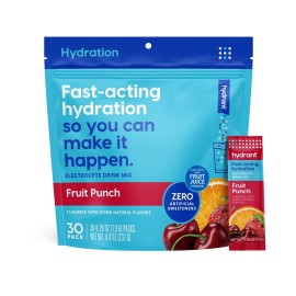 Hydrant - Hydrate Electrolyte Powder, Fruit Punch Flavor, 30 Rapid Hydration Individual Stick Packs - Low Sugar Drink Mix for Daily Use, Travel & Workouts