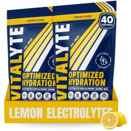 Vitalyte Electrolyte Powder Drink Mix, Isotonic Electrolyte Hydration Mix, Gluten Free Post Workout Powder Mix, Pack of 1, 35 oz., Lemon Flavor