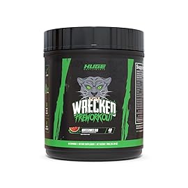 Huge Supplements Wrecked Pre-Workout, Advanced Formula, Boosts Energy, Focus, Pumps & Performance, 10g L-Citrulline, 6.4g Beta Alanine, 5g Tyrosine, 1g Alpha GPC, 375mg Fast-Acting Caffeine & More