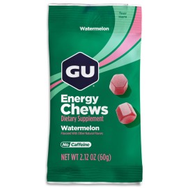GU Energy Chews pack energy-dense calories to help you fuel on-the-go. This highly portable bag contains sixteen (16) bite-sized Chews, which translates to two (2) servings, making it easier to eat and fuel at your own pace. These mini versions of our Energy Chews also have electrolytes and amino acids to keep you feeling strong. Warermelon Energy ..