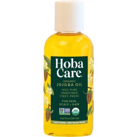 HobaCare Organic Unrefined Jojoba Oil for Nails, Cuticles, Dry Skin, Beard, Scalp Massage - Mini Travel Size 100% Pure Hexane Free Natural Carrier Oil for Skincare, Hair, Shaving Aftercare (4.22 oz)