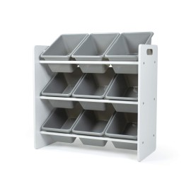 Humble Crew 9-Bin Toy Organizer - Inspire Grey with White Plastic Bins, 3-Tier Storage Solution for Kids\' Playrooms and Nurseries