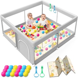 Baby Playpen with Mat 50x50 Inch, Playpen with Colorful Ball for Babies and Toddlers, Baby Play Pen Pin Indoor Play Fence (Mat and Ball Included)