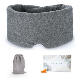 FRESHME Cotton Eye Mask for Sleeping in Gift Box - Soft and Adjustable Extensions Sleep Mask with Earplugs and Pouch for Women and Men, Blackout Cover for Night Travel Relaxation