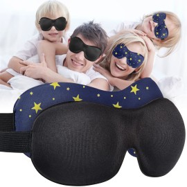 AMAZKER Cute Eye Mask Sleep Mask for Men Women Kids,2 Pack 3D Contoured Cup Sleeping Mask & Blindfold, Concave Molded Night Sleep Mask, Block Out Light (B-Stars, 1 Count (Pack of 1))