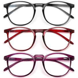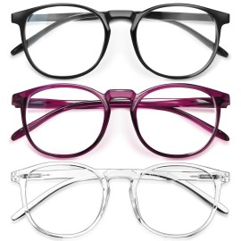 IBOANN Chic & Comfy Blue Light Glasses for Women - 3-Pack Round Frames, Screen-Ready Style with UV Protection Coating