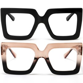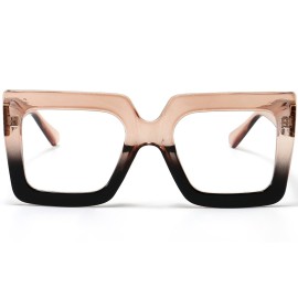 AIEYEZO Oversized Square Blue Light Glasses for Women Cute Big Frame Glasses Fashion Clear Multi-Color Computer Eyewear (Black + Champagne Black)
