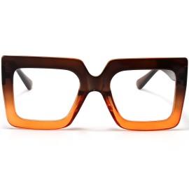 AIEYEZO Oversized Square Blue Light Glasses for Women Cute Big Frame Glasses Fashion Clear Multi-Color Computer Eyewear (Brown Orange)
