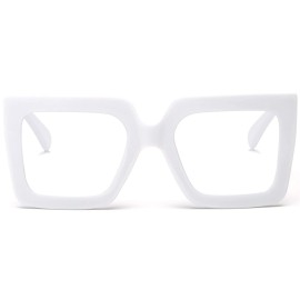 AIEYEZO Oversized Square Blue Light Glasses for Women Cute Big Frame Glasses Fashion Clear Multi-Color Computer Eyewear (White)