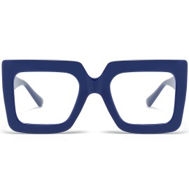AIEYEZO Oversized Square Blue Light Glasses for Women Cute Big Frame Glasses Fashion Clear Multi-Color Computer Eyewear (Dark Blue)