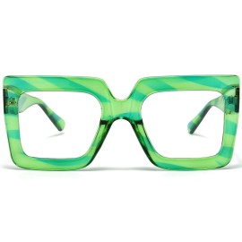 AIEYEZO Oversized Square Blue Light Glasses for Women Cute Big Frame Glasses Fashion Clear Multi-Color Computer Eyewear (Green)