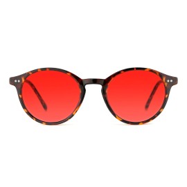 TIJN Red Lens Blue Light Blocking Glasses - Round Frame, Dual AR Coating, Computer & Gaming Eyewear for Screen Use, Tortoise