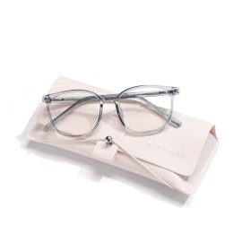 FONHCOO Blue Light Blocking Glasses Fashion Round TR90 Frame Transparent Eyewear Anti UV Blu-Ray Computer Glasses for Women Men (Grey)