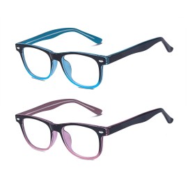 Outray 2 Pack Kids Computer Blue Light Blocking Glasses for Boys and Gilrs Age 3-12 Anti Eyestrain (Set Gradient Blue+Gradient Purple, 46)