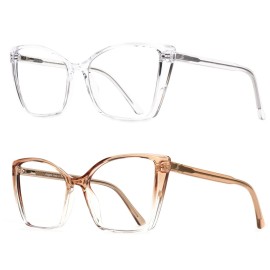 JFXQDR 2 Pack Blue Light Blocking Glasses for Women, Oversized Trendy Cat Eye Computer Gaming Glasses Anti Glare & UV Glare RF6204 (Clear + Clear Gradient Brown Cateye Frame)