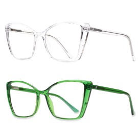 JFXQDR 2 Pack Blue Light Blocking Glasses for Women, Oversized Trendy Cat Eye Computer Gaming Glasses Anti Glare & UV Glare RF6204 (Clear + Basil Green Cateye Frame)