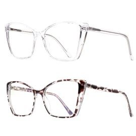 JFXQDR 2 Pack Blue Light Blocking Glasses for Women, Oversized Trendy Cat Eye Computer Gaming Glasses Anti Glare & UV Glare RF6204 (Clear + Leopard Cateye Frame)