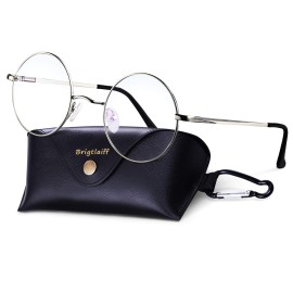Brigtlaiff Round Blue Light Blocking Glasses for Men Women (Silver Frame)